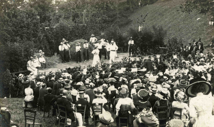 Tulle, XVe fête de l'Eglantine, représentation de l'opérette « Le Moissonneur » de Francis Casadesus et Raoul Charbonnel, le 15 août 1909, avec des artistes de la Comédie française, de l'Opéra et de l'Odéon. Arch. dép. Corrèze, 22Fi/335, fonds Fourgeaud.
